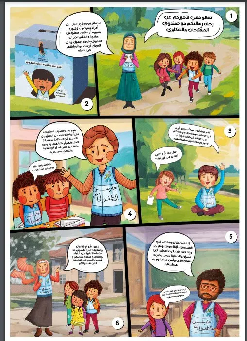 - Illustrated posters explaining complaint mechanisms in child-friendly language